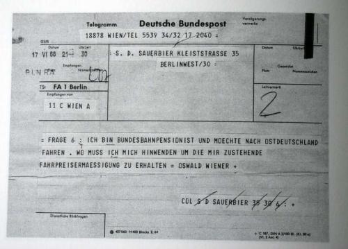 ![]() »fort mit dem schritt« – tomas schmit Revue Rendez-vous. Ein Korrespondenzstück. Fluxus, was das denn überhaupt sei, fragte in einer städtischen Kunsthalle während einer sich um die Moderne drehenden Gesprächsrunde unlängst eine Mittdreißigerin. Unter dem überwiegend jüngeren Publikum herrschte allgemeine Ratlosigkeit. Da meldete sich wie aus dem Jenseitigen die Stimme eines Präachtundsechzigers, die klang wie die des Fluxers Robert Watts: »Das Wichtigste an Fluxus ist, daß niemand weiß, was es ist. Es soll wenigstens etwas geben, das die Experten nicht verstehen.« Des Geistes Stimme ergänzte noch: Er sehe Fluxus, wo er auch hingehe. Das könnte zum Beispiel der am Straßenrand installierte digitale Großbildschirm sein, auf dem Partnerschaftsvermittler um die Gunst von Kunden buhlen, indem sie Heraklits in Kontaktanzeigen gerne verknappt zitierte Feststellung Pantha rei oder auch Alles fließt zuhilfe nehmen. Fluxus persifliert allerdings weniger den schnöden Alltag, als daß diese Gattung zeitloser interdisziplinärer Kunst direkt auf den bisweilen bitteren Ernst des Lebens verweist. Die Epoche der Romantik schwingt dabei mit: Kunst ist Leben, Leben ist Kunst. Den Romantikern zuzuordnen ist auch der in den politisierten und polarisierenden Zeiten der Achtundsechziger geradezu verfemte BegriffL'art pour l'art. In der Übertragung ins Deutsche kam der häufig mißverständlich an, da ihm mangels historischer Differenzierung allein die Bedeutung einer Kunst um der Kunst willen zugeschrieben worden war. Den damit unverbrüchlichen Zusammenhang mit dem Leben klammerten die politisierten Interpretatoren einfach aus. 1993 erschien im Laubacher Feuilleton, einer nach fünfjährigem Erscheinen 1996 eingestellten Vierteljahreszeitung, ein Aufsatz titels Die Gemeinschaft der Künstler und die Gemeinschaftsarbeiten in den Künsten. Autor war S. D. Sauerbier, der von 1993 bis zu seiner Emeritierung 2007 an der Kunsthochschule Berlin-Weißensee unter anderem Wahrnehmungstheorie sowie die Lehre von den Zeichen, die Semiologie, unterrichtete. Mit Auslöser dieses Essays war die seinerzeit heftig aufflammende Diskussion um ein geeintes, vereintes Europa. Zuvor war die Mauer zum Ostblock gefallen, während man in Südspanien nahezu gleichzeitig einen neuen Wall zu errichten begann, hier gegen vermeintliche Wirtschaftsflüchtlinge aus Afrika. Zeitgleich wurde die Globalisierung – wahrhaftig nicht die erste dieser Erde, aber wohl die zum erstenmal tatsächlich, weil in den wirschaftlichen Folgen auch für den den einzelnen Arbeitnehmer deutlich spürbare, auch für den sogenannten Otto Normalverbraucher exorbitant wahrgenommene – bzw. deren Expansionstreiben heftig debattiert; daß es sich dabei lediglich um eine neuerliche internationale Vereinheitlichung des Mehrwertgedankens handelte, wurde weniger erörtert. Sauerbier führte, gleichwohl in einer für die Zeit und diese Art typischen ironischen oder auch teilweise polemisierenden Diktion, den Nachweis, innerhalb der Künstler habe sich eine solche Gemeinschaft längst formiert, dabei allerdings ohne jedes wirtschaftliche Bestreben; der sich seinerzeit entwickelnde, ab den achtziger Jahren über die Ufer tretende, ähnlich den Finanzgeschäften kaum mehr zu kanalisierende Kunstmarkt wurde ausgeklammert, als schlichtweg nicht existent erachtet. »Hier bin ich Mensch?« zweifelte Sauerbier vor gut zwei Jahrzehnten, an der nordafrikanischen Küste sitzend, gen Europa blickend. »Dieselben Kulturbürger und -träger regen sich unziemlich über Muslime im eigenen Land auf, über verschleierte Frauen: ›Die haben sich gefälligst anzupassen!‹ Sie tragen ihre nackten, schwangeren Bierbäuche spazieren und lassen am Strand ihre Busen baumeln. ›Hier bin ich! Mensch!‹ [...] Da doch schon unsere Ziffern, Bezeichnungen wie Alkohol oder Alchimie arabischen Ursprungs sind, haben es aber die Ölscheichs in Kuweit und in Libyen, Saudi-Arabien und den Vereinigten Emiraten versäumt, uns mit neuerer arabischer und islamischer Kultur vertraut zu machen. Die Scheichs besitzen riesige Anteile an unserer Wirtschaft – nehmen aber keinen Anteil an unserem kulturellen Volksvermögen mehr. [...] ›Die Hölle – das sind die anderen‹, heißt es bei Jean Paul Sartre. Doch soll uns das nicht als Ablaßspruch dienen. Einwohner der BRD als Nachfolgestaat der Schutzmacht des faschistischen Ustascha-Regimes – diffamiert man Deutsche heute von der anderen Seite. [...] Nation Europa hieß eine rechtsextreme Zeitschrift, unverschämt kryptofaschistisch. Ich erinnere mich an eine Kritik der II. documenta – als wenn in Kassel ›entartete Kunst‹ ausgestellt worden wäre! Sollte denn eine solche Ideologie die Zukunft Europas bestimmen?! Ende der fünfziger Jahre gab es allerdings auch andere ideologische Positionen zu Europa. Auf dem Programm stand nicht gerade der common nonsense und das ungesunde Volksempfinden der Abendländler. Durchdringung und Aneignung von Kulturen führten zu Internationalismus und zugleich Regionalismus. Konkrete Poesie in Schwyzerdütsch und Lautgedichte in Wiener Mundart, heute Rockpoesie auf Kölsch ... Das Zusammenfließen sehr unterschiedlicher Strömungen zeigte sich in Übertragungen, Verknüpfungen und Anschlüssen von Kontexten. Nach dem Niedergang des internationalen Stils, nach der Reise in die Innerlichkeit kam es Ende der fünfziger Jahre zu verstärkter Hinwendung zur sozialen Realität. Eine veränderte Auffassung von Wirklichkeit war festzustellen bei Nouveau Réalisme, Zero, Fluxus, Pop art, Konkreter Kunst, Conceptual art ... Damit sind nun gar keine gegeneinander abgeschotteten ›Firmen‹ markiert, wo die Künstler liberale Kumpaneien, ›Banden‹, bildeten. [...]« Auf den wechselseitigen Austausch unter Künstlern verweist SDS, wie er zu und aus Zeiten der sozialrevolutionären Jahre des Sozialistischen Deutschen Studentenbundes logischer- oder auch konsequenterweise fortan genannt wurde, der 